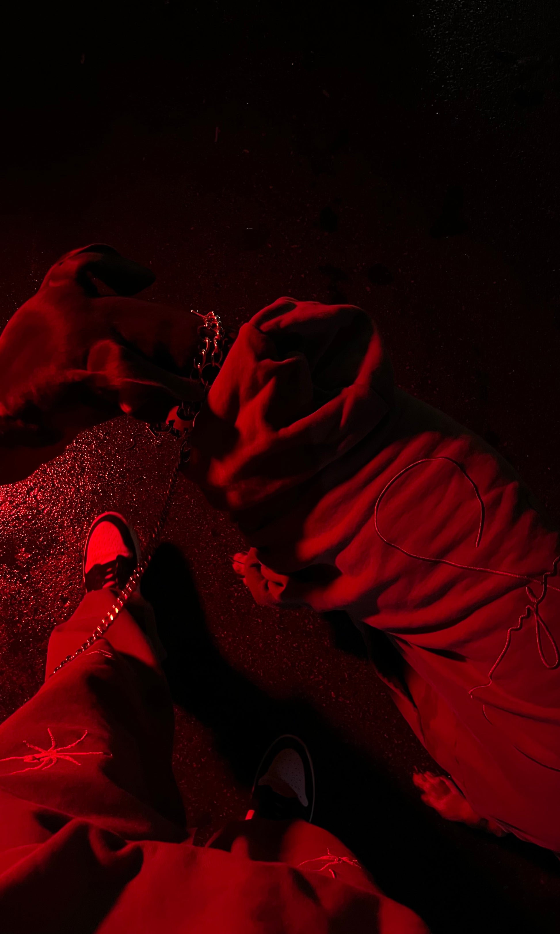 Take care of what takes care of you with this custom Crimson embroidered and hand distressed Originals Sweatsuit. A heavyweight one size cotton build that delivers an oversized look for the shorties, a comfort fit for the thick, and a highly sensible loose look for all my fellow slenders.