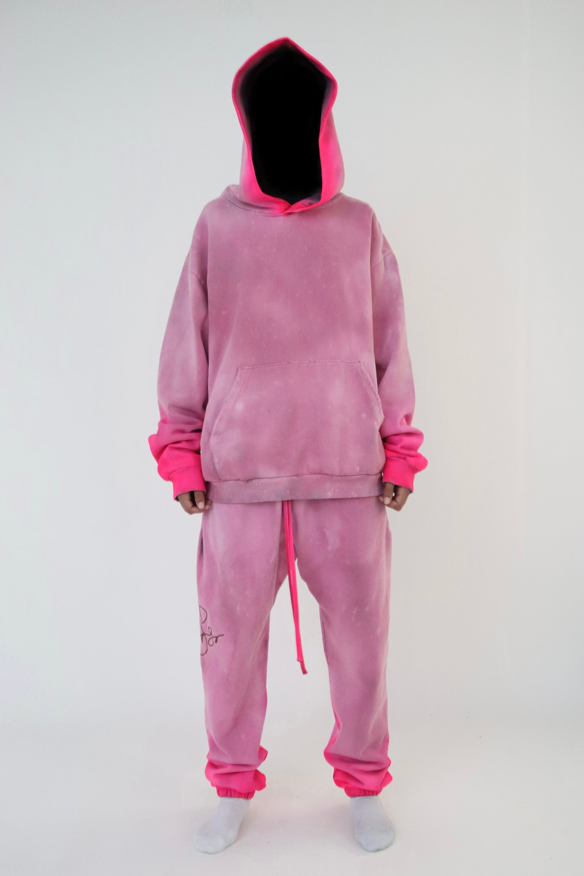 Made in the USA, designed and customized by Tayden Seay, this %100 cotton sweatsuit brings you dense durability and heavyweight feel constructed of 470 GSM fabric. This set provides a deep spacious hood, thick right booty pocket, 41 inches of adjustable drawstring, pushin' heavy streetwear comfort - a true signature Sayden Seay look. Hand painted with custom embroidered designs, the 1 of 1 Custom Ombré Signature Sweatsuit.