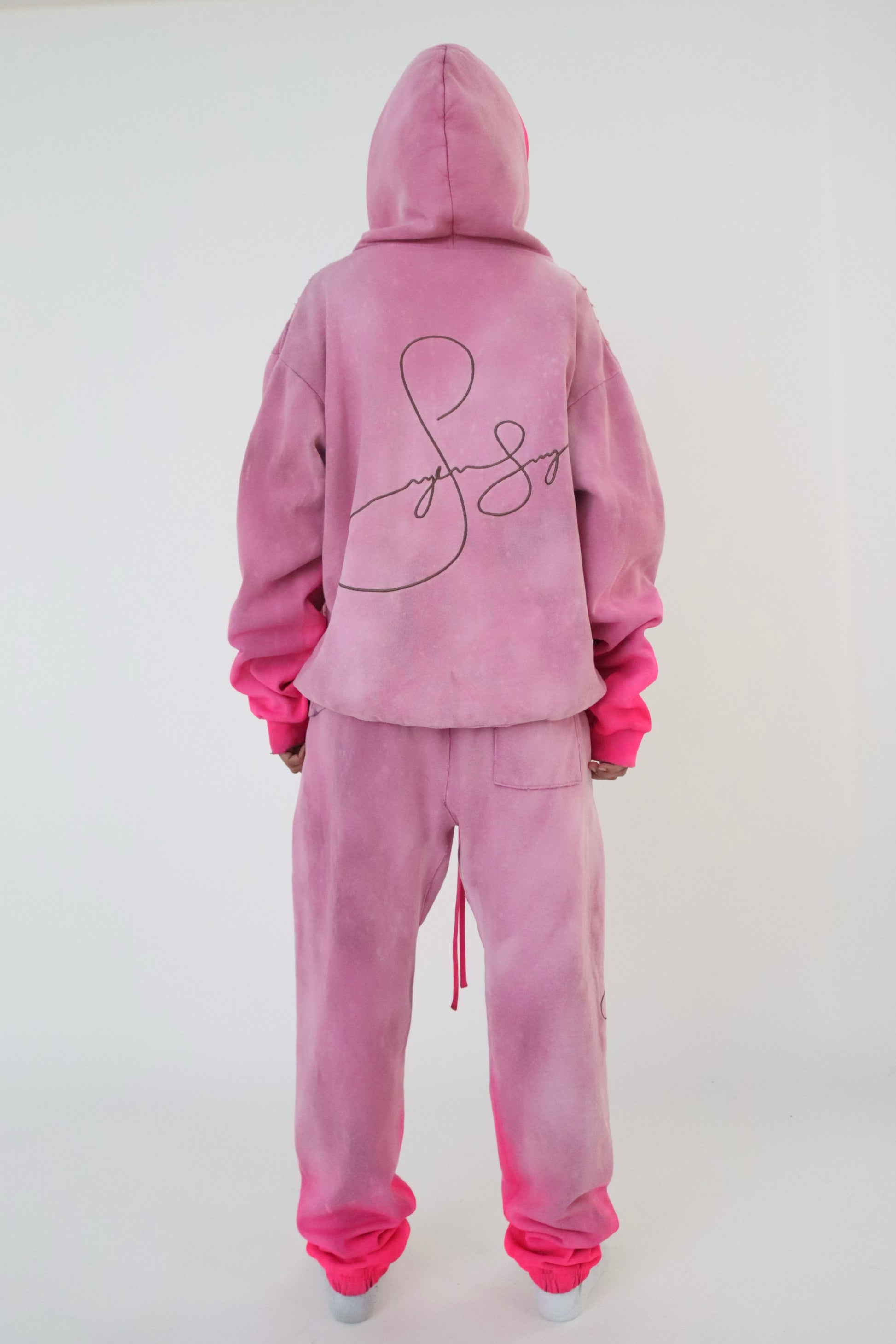 Custom Ombré Embroidered Signature Sweatsuit in Pretty Pink